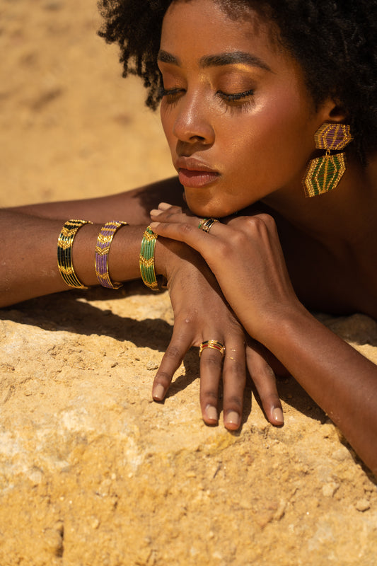 We believe in the consciousness of creation; the artistic expression should motivate positive impact. This is why we do not use welding nor casting techniques in are jewels and are categorized as an eco-friendly brand. Our main material is gold-plated wire which lets us fabricate light weighted, original pieces. We complement our creations with natural fibers, using different techniques like crochet, macrame and wire wrapping.